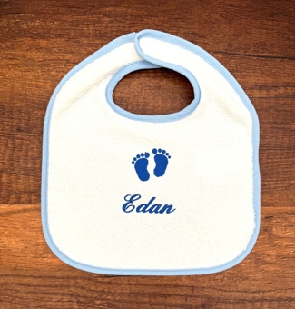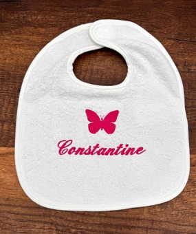 Un bavoir tout en douceur à offrir dès la naissance. Il sera personnalisé au prénom du