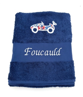 Choisissez la couleur de votre drap de bain, la couleur de la broderie du prénom et le style d'écriture.