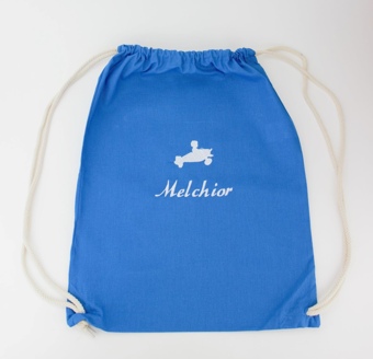 Sac à dos en coton avec bretelles en cordelettes coton blanches. Taille 45 x 33 cm. 13 L