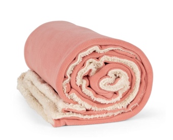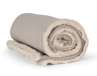Vous pouvez personnaliser ce plaid en indiquant un prénom ou un nom de maison, la broderie sera faite sur le côté polaire, en haut à gauche, de la même couleur que le côté sherpa (écru)