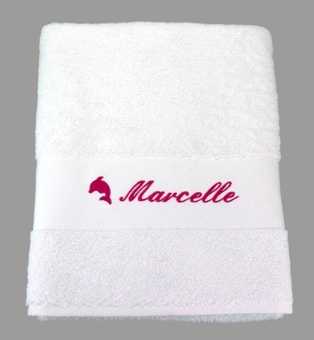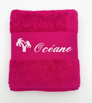 En option, vous pourrez ajouter le drap de bain assorti et un gant de toilette BLANC brodé avec l'initiale du prénom
